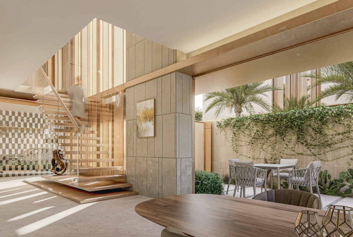 The project is characterized by its collection of elegant villas and townhouses, designed with meticulous attention to detail. Each home features spacious layouts, high-end finishes, and modern interiors, seamlessly blending contemporary aesthetics with functionality. Expansive windows and private outdoor spaces invite natural light and greenery into the living areas, creating a harmonious connection between the indoors and the surrounding environment.