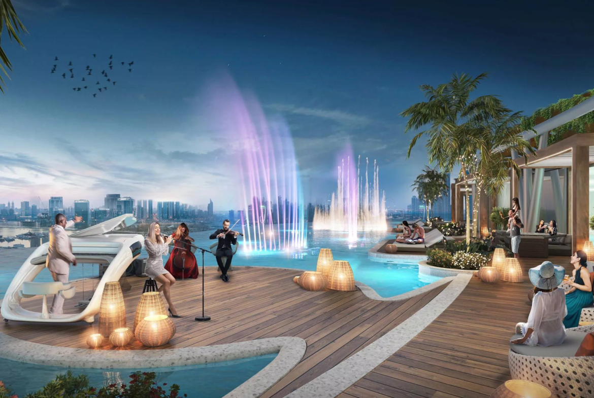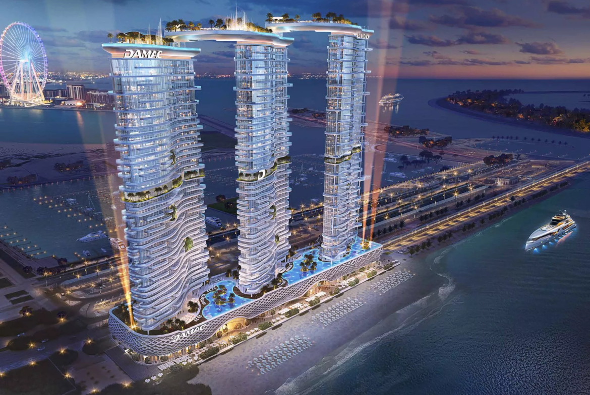 Set to become the next trending landmark in Dubai Harbour, DAMAC Bay by Cavalli is an elite 3-tower development by DAMAC Properties, in partnership with the world-renowned Cavalli brand. Prospective real estate buyers are presented with the opportunity to select their dream home from a range of exquisitely crafted ‘luxury’ apartments with 1–3 bedroom configurations. Those who want to experience a more elevated lifestyle can consider acquiring one of the limited-edition 3–5 bedroom duplexes with private swimming pools from the ‘super-luxury’ category, located on the upper floors of the branded complex. In addition, there are full-floor units available, as well under lucrative purchase conditions. Not forgetting the exclusive Skycrest Collection with upscale residences on the upper floors. The distinctive feature of the development is a 270-degree view of the beautiful surrounding landscapes.
