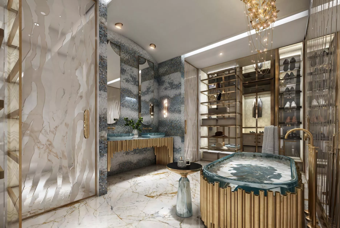 The size of the properties in DAMAC Bay by Cavalli ranges from a compact 718 sq. ft to a colossal 6,582 sq. ft. Please note that full floors come with either 7 or 8 units, with a sellable area varying between 8,682 sq. ft and 8,799 sq. ft. Designed with touches of gold and marble, the premium units will come unfurnished, enabling you to customize your living spaces up to your personal taste and style. At the same time, the kitchens will be equipped with an array of premium appliances, including a refrigerator, a cooker, a hob and a washing machine. Each residence will feature stylish walk-in closets and 1 or more private balconies, which will overlook the stunning waterfront.
