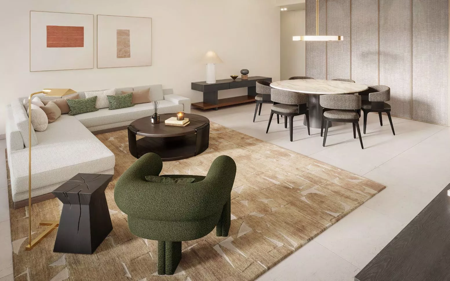 The exterior concept of Eden House – The Canal is created by the renowned architectural studio DXB Lab. At the same time, the interiors of the residences are being designed by a team of skilled craftsmen and artisans. Residents will enjoy the combination of lightly bronzed glass, subtly textured stones, rich marble and brushed metals.