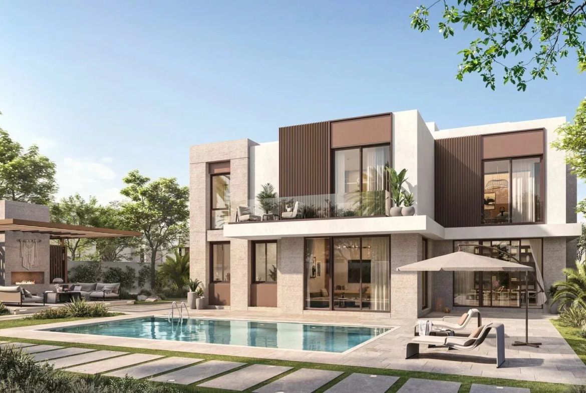 Fay Al Reeman II is the second phase of Aldar Properties’ large-scale Fay Al Reeman community located in Abu Dhabi, in the Al Shamkha district, which is far from the bustling capital city. The project, presented in February 2023, is the latest addition to the Alreeman freehold area and will comprise 557 three–six bedroom villas ranging in size from 3,272 sq. ft to 5,238 sq. ft. All homes will be 2-storey’s with layouts including balconies, terraces, indoor and outdoor majilis and a maid’s bedroom. Detached plots range in size from 5,705 sq. ft to 11,570 sq. ft and can be fitted with an optional private swimming pool. The residences will also have 2–5 parking spaces depending on their size.