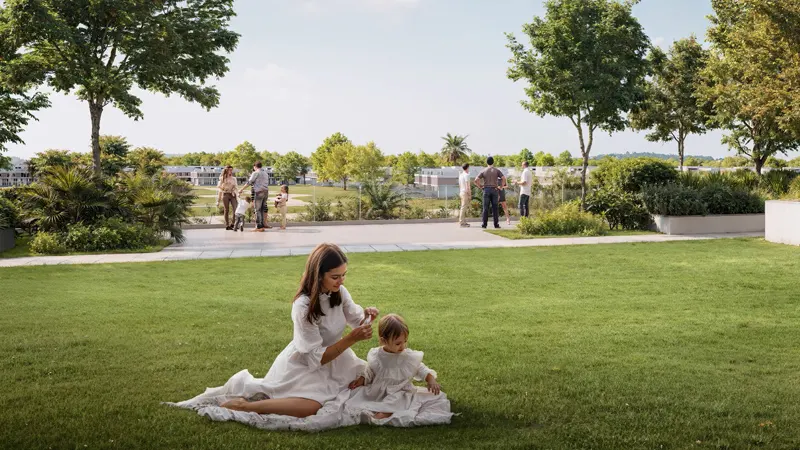 The architecture and design are inspired by contemporary aesthetics, ensuring that each residence blends seamlessly with the surrounding landscape. The development features a sophisticated façade and an earthy palette, creating a harmonious and tranquil living environment. Inside, open-plan layouts, neutral tones, and high-quality finishes contribute to a peaceful atmosphere, making each home a sanctuary of comfort and style. The modern kitchens and luxurious bathrooms are designed with meticulous attention to detail, ensuring that every aspect of your home meets the highest standards of quality and comfort.