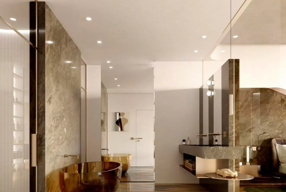 Among the proposed units are 1-3 bedroom apartments, two 3-bedroom premium residences and just one 3-bedroom duplex penthouse on the 58th-59th levels of the complex. The size of the units ranges from 858 sq. ft to 17,970 sq. ft, including the private balconies. Spacious layouts ensure the most comfortable living environment. Select residences additionally feature a maid’s room for homeowners’ absolute convenience. Please note that the residences come unfurnished and fully-fitted. The kitchens are distinguished by premium Miele appliances.