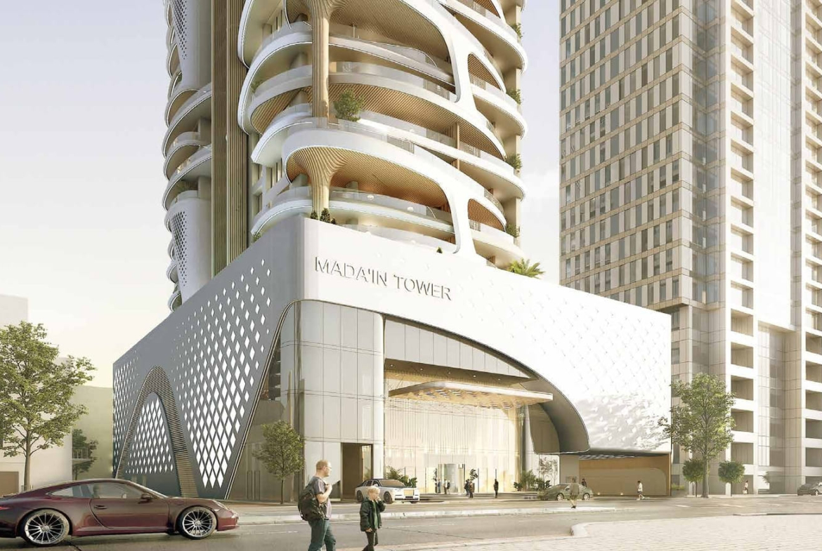 The architecture and interiors of Mada’in Tower apartments reflect a blend of modern design with functional elegance. The apartments for sale in Mada’in Tower are equipped with smart systems, enhancing the living experience for residents. The inclusion of kitchen appliances adds to the convenience, making these apartments ready for immediate occupancy.