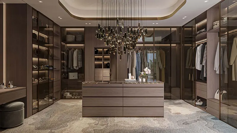 The primary master bedroom features an extensive walk-in wardrobe, accommodating everything required for the day ahead. The unique design of the villas at Nineteen Riviera Lagoon ensures that every detail, from security to luxury, is meticulously crafted for the ultimate living experience.