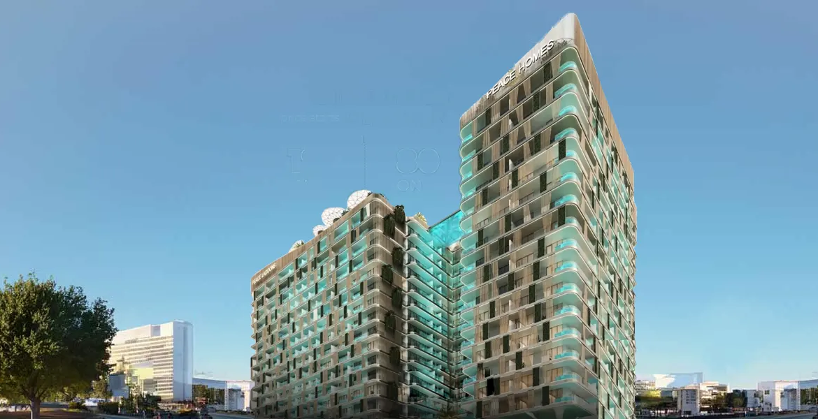 Experience the epitome of luxury living at Peace Lagoons by Peace Homes Group, an exceptional residential development with studios, 1 & 2-bedroom apartments located in the prestigious Dubailand Residence Complex (DLRC). Boasting an innovative design across 17-storey with unparalleled amenities, the façade redefines modern living in Dubai. Nestled amidst lush greenery and shimmering lagoons, this residential haven offers a serene oasis away from the hustle and bustle of the city.